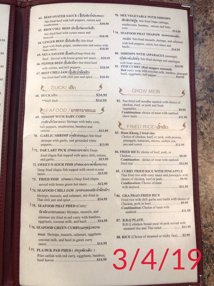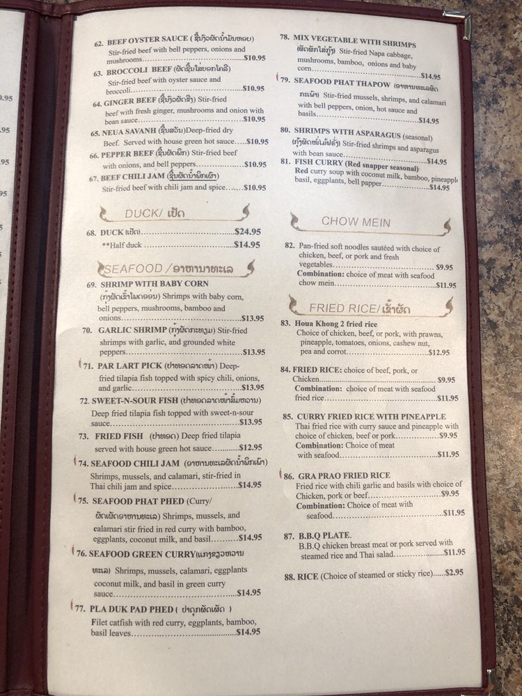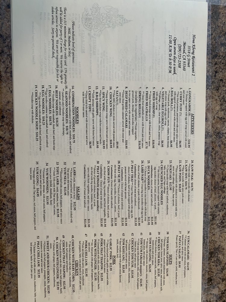 Houa Khong 2 is a Thai cuisine gem in Merced, CA. With a cozy and casual setting, this restaurant offers a variety of vegan and vegetarian options, making it suitable for all dietary preferences. Customers rave about the flavorful dishes like pad Thai, pho, and chili chicken. The generous serving sizes and authentic flavors keep patrons coming back for more. The attentive service and quick pick-up times for takeout orders make dining here a convenient and enjoyable experience. Whether you're a fan of spicy food or prefer milder flavors, Houa Khong 2 caters to all tastes. With a menu that includes traditional favorites like beef pho, pad see ew, and chicken wings, this restaurant is sure to satisfy all your Thai food cravings. Don't miss out on this hidden gem for a delicious dining experience.